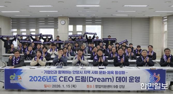 한민일보 서울포커스 김성윤 기자 | 안양산업진흥원은 15일 오후 3시30분 안양창업지원센터 강당에서 관내 기업인 150여 명을 대상으로 지역사회 문화·체육 활성화를 위한 ‘2026 CEO 드림(Dream) 데이’를 열었다.