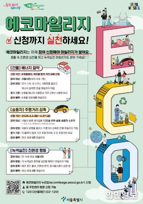 또한 음식물쓰레기 감량이나 친환경 운전 습관 실천 시 최대 5,000마일리지(5,000원 상당)를 지급하는 ‘녹색실천 마일리지’ 항목이 신설됐다. 이 밖에도 에코 퀴즈 참여, 서울시 주관 환경교육 또는 기후 관련 온·오프라인 행사 참여 시 마일리지가 지급된다.