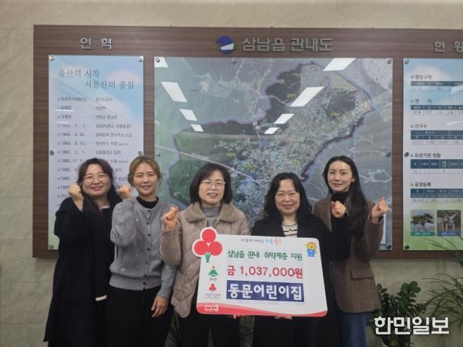 한민일보 서울포커스 기자 | 울주군 삼남읍에 소재한 동문어린이집이 19일 삼남읍 행정복지센터에 소외된 이웃을 돕기 위한 성금 103만7천원을 전달했다.