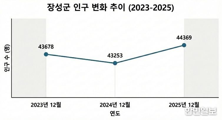 한민일보 서울포커스 박용남 기자 | 장성군이 지방 소멸과 인구 감소 우려를 해소하는 유의미한 통계를 발표했다. 군에 따르면 지난해 12월 집계된 장성군의 인구는 4만 4369명으로, 1년 전보다 1116명 증가한 것으로 나타났다.
