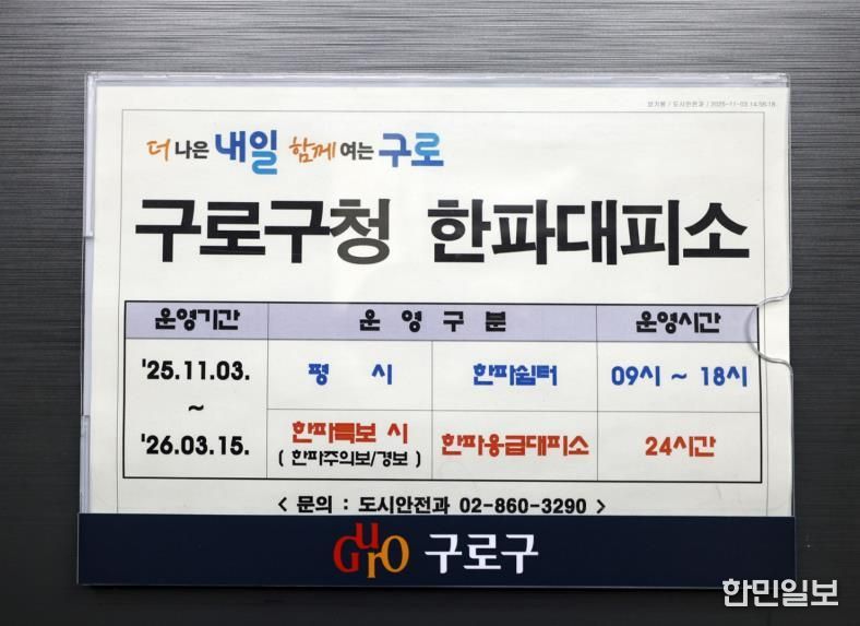 한민일보 서울포커스 진광성 기자 | 구로구는 1월 20일부터 시작되는 강력 한파 예보에 따라 한파쉼터 및 응급대피소 운영 현황을 안내하고, 주민들의 적극적인 이용을 당부하고 나섰다.