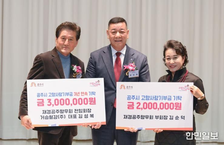 20일 공주시에 따르면, 김순덕 재경공주향우회 상임부회장과 김성복 전임 회장은 각각 200만 원과 300만 원을 기부하며 고향 발전에 대한 뜻을 보탰다.