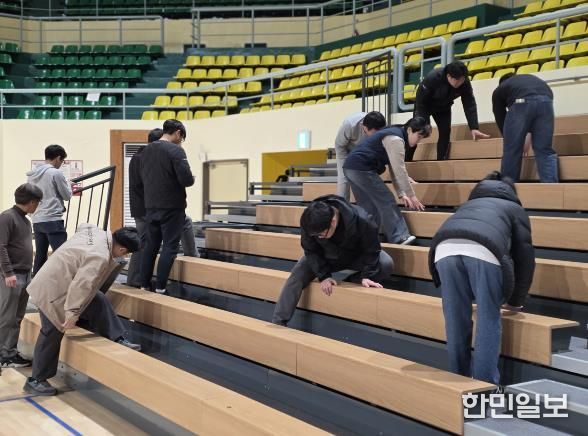 - 1부 시설 점검: 마루바닥의 평탄성 및 가변석 구동계 유격·고정 상태 정밀 확인