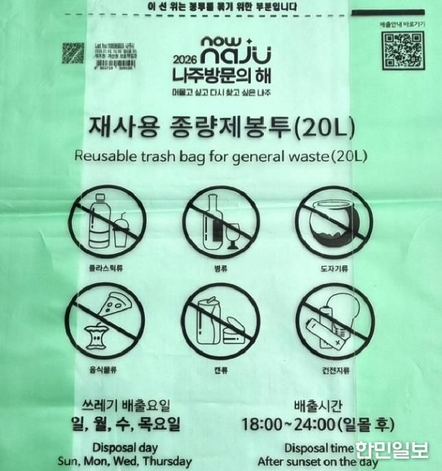한민일보 서울포커스 임광현 기자 | ‘500만 나주 관광시대’를 위해 2026년을 나주방문의 해로 선포한 전라남도 나주시(시장 윤병태)가 홍보 활동의 일환으로 종량제봉투에 ‘2026 나주방문의 해’ 공식 문구와 슬로건(머물고 싶고 다시 찾고 싶은 나주)을 삽입해 시민들에게 홍보를 시작한다고 밝혔다.