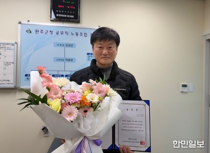 한민일보 서울포커스 박용남 기자 | 완주군청 공무직 노동조합은 20일 모바일 투표로 진행된 제6대 완주군청 공무직노동조합 위원장 선거 결과, 김상곤 후보가 상대 후보를 제치고 당선을 확정 지었다. 완주군청 공무직노동조합을 이끌 차기 수장으로 김상곤 현 위원장이 다시 한번 선택을 받으며 ‘5선 당선’이라는 대기록을 세웠다.