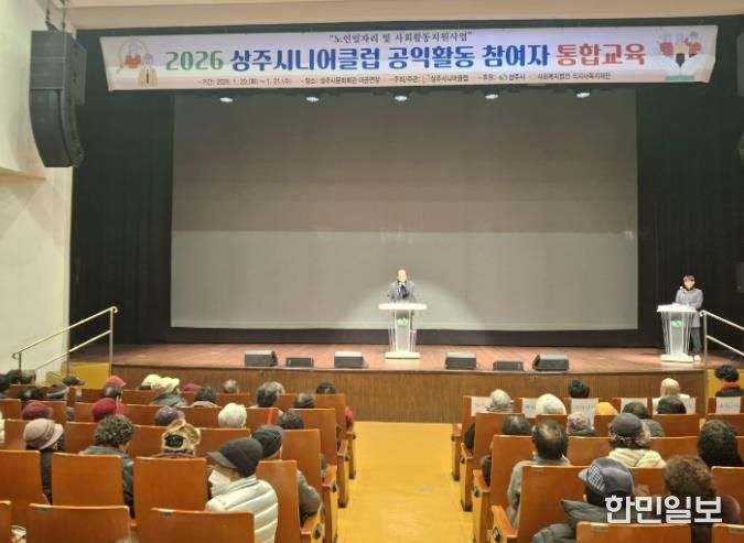 한민일보 서울포커스 김봉순 기자 | 상주시니어클럽은 2026년 노인일자리 및 사회활동지원사업 참여자를 대상으로 1월 20일부터 21일까지 이틀간 상주문화회관에서 통합교육을 실시했다.