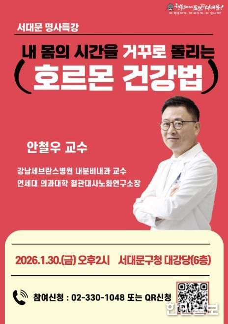 한민일보 서울포커스 김서윤 기자 | 서대문구가 연세대 의대 강남세브란스병원 내분비내과 안철우 교수를 초청해 이달 30일 오후 2시부터 90분간 구청 6층 대강당에서 ‘1월 서대문 명사 특강’을 개최한다.