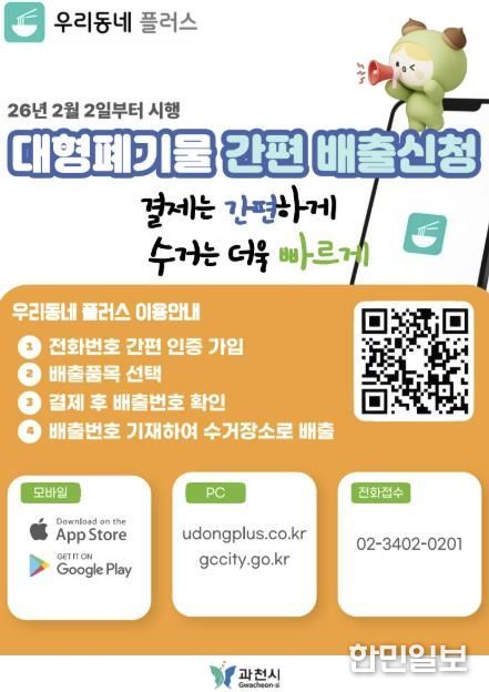 한민일보 서울포커스 최성훈 기자 | 과천시는 시민 편의를 높이기 위해 오는 2월 2일부터 대형폐기물 온라인·모바일 배출 시스템을 본격 운영한다고 밝혔다.