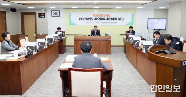 한민일보 서울포커스 임경복 기자 | 충남도의회 농수산해양위원회는 21일 제363회 임시회 1차 회의에서 충남도 남부출장소·농축산국·스마트농업본부·동물위생시험소·축산기술연구소로부터 2026년도 주요 업무계획을 보고받았다.