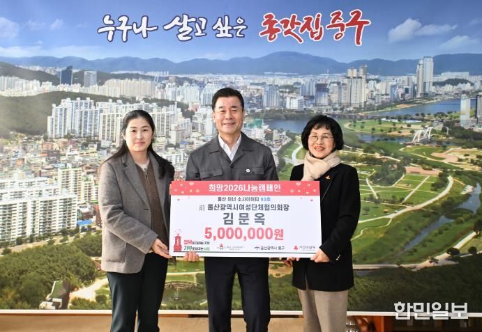 한민일보 서울포커스 기자 | 울산 제93호 아너소사이어티 회원인 김문옥 씨가 1월 21일 오전 10시 30분 중구청 구청장실을 찾아 울산사회복지공동모금회를 통해 이웃돕기 후원금 500만 원을 전달했다.