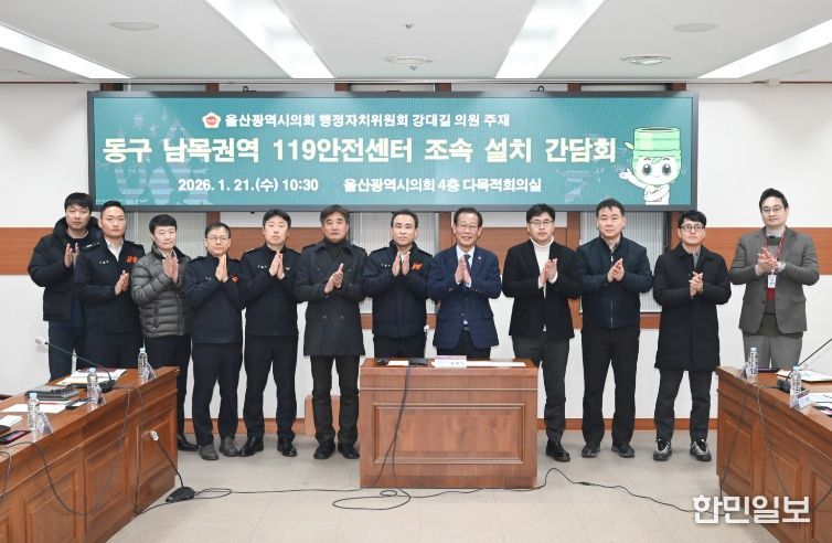한민일보 서울포커스 임경복 기자 | 울산시의회 강대길 의원은 21일 의회 4층 다목적 회의실에서 주민, 소방본부, 동부소방서, 울산도시공사 관계자 등과 함께 ‘동구 남목권역 119안전센터 조속 설치’ 간담회를 가졌다.