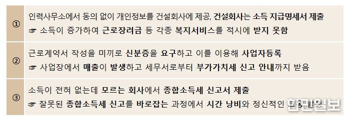 그간 나도 모르는 사이에 근무하지도 않은 회사에서 소득 지급명세서가 제출되는 등 명의도용 피해가 발생하면 생업으로 바쁜 피해자들이 스스로 해결해야 했다.