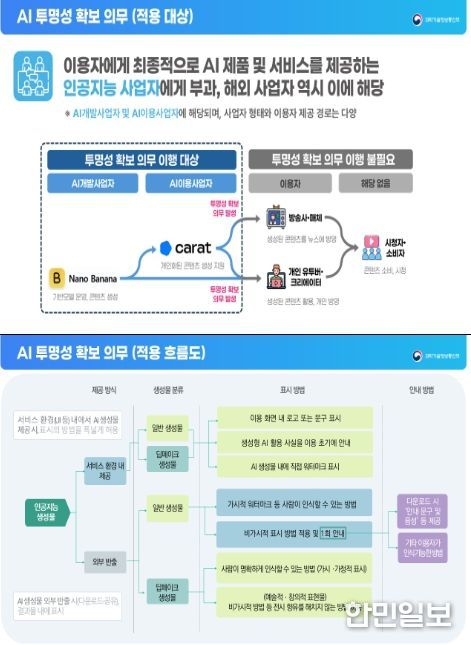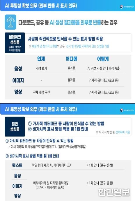 한민일보 서울포커스 기자 | 과학기술정보통신부는 1월 22일'인공지능 발전과 신뢰 기반 조성 등에 관한 기본법' ‘인공지능 기본법’)상 투명성 확보 의무(제31조)의 구체적인 이행 방안을 담은'인공지능 투명성 확보 안내 지침(가이드라인)'을 공개했다.