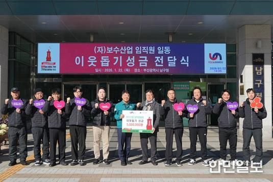 한민일보 서울포커스 임광현 기자 | (자)보수산업은 지난 1월 22일, 부산 남구청을 방문해 직원들이 십시일반 정성을 모아 마련한 성금 500만 원을 기부했다고 밝혔다.