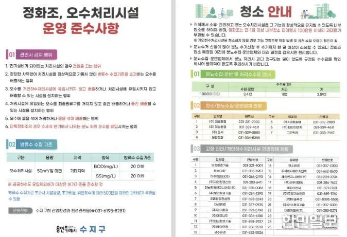 이번 안내문에는 시민들이 꼭 알아야 할 ▲정화조 관리 시 주의사항 ▲정화조·분뇨 청소 요금 기준 ▲허가받은 청소·수거 업체 현황 ▲방류수 수질 기준과 관리 요령 등이 담겼다.