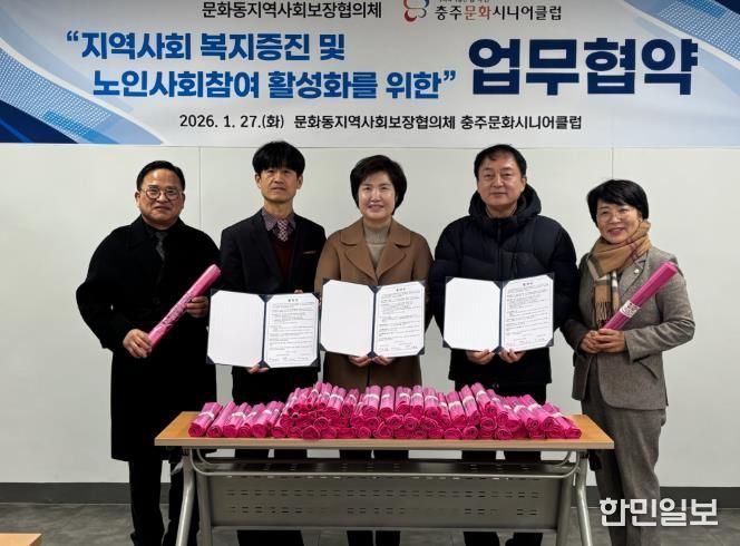 한민일보 서울포커스 김다남 기자 | 충주문화시니어클럽과 문화동 지역사회보장협의체가 27일 지역사회 복지 증진과 노인 사회참여 활성화를 위한 업무협약을 체결했다고 밝혔다.