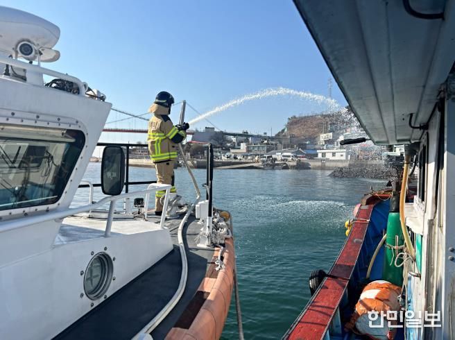 한민일보 서울포커스 김은금 기자 | 사천해양경찰서는 오늘(27일) 오후 2시 하동군 구노량항에서 밀집 계류지 어선 화재 사고를 가정한 합동훈련을 실시했다고 밝혔다.