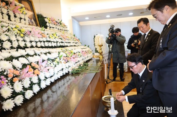 한민일보 서울포커스 김윤이 기자 | 김민석 국무총리가 27일 종로구 서울대학교병원 장례식장에서 故 이해찬 민주평통 수석부의장의 빈소를 조문하고 있다.