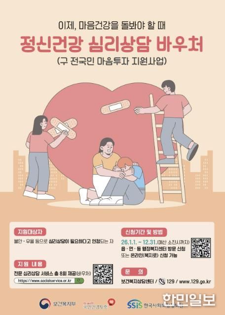 한민일보 서울포커스 김은금 기자 | 진주시는 우울·불안 등 정서적 어려움을 겪고 있는 시민을 대상으로 전문적인 심리상담 서비스를 제공하는 ‘정신건강 심리상담 바우처사업’(기존 전국민 마음투자 지원사업)을 2026년에도 지속 추진한다고 밝혔다.