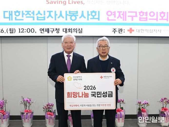한민일보 서울포커스 임광현 기자 | 부산광역시 연제구의회는 지난 1월 26일 2026년도 적십자 특별회비를 대한적십자사 부산지사 측에 전달했다. 이는 지역 내 취약계층에 온정을 나누고 나눔문화 확산에 기여하기 위한 것으로 연제구의회는 해마다 적십자 특별회비 납부에 적극 동참하고 있다. 권종헌 의장은 "우리의 작은 나눔이 어려운 분들에게 희망을 불어넣는 계기가 되길 바란다”며 “연제구의회도 이웃과 함께하는 따뜻한 지역사회를 만들어가기 위해 최선을 다하겠다”고 말했다.