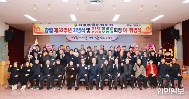한민일보 서울포커스 김은금 기자 | 의령군발전협의회는 지난 26일 의령읍사무소 3층 회의실에서 회원과 각급 기관·사회단체장이 참석한 가운데 창립 제32주년 기념식과 제21대 장원영 회장, 제22대 오연이 회장의 이·취임식을 개최했다.