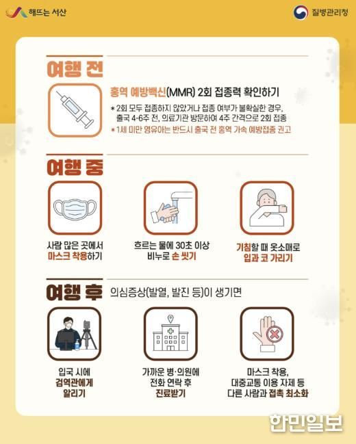 홍역은 공기나 비말을 통해 전파되는 전염력이 매우 강한 질환이지만, 표준 예방접종 일정에 맞춰 2회 접종을 완료하면 충분히 예방이 가능하다. 시는 해외여행을 계획 중인 시민들에게 여행 전 반드시 MMR(홍역·유행성이하선염·풍진) 예방접종 여부를 확인하고, 접종 이력이 불분명한 경우 미리 접종을 마칠 것을 권고했다.