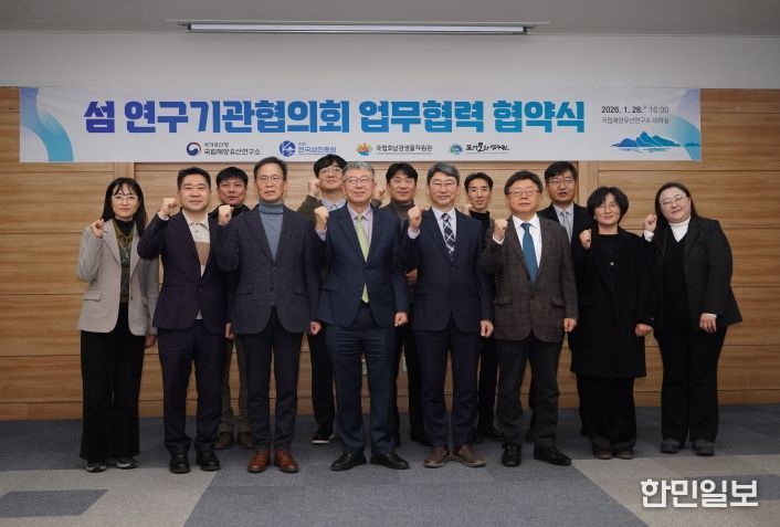 한민일보 서울포커스 진광성 기자 | 국가유산청 국립해양유산연구소(소장 이은석)는 한국섬진흥원(원장 조성환), 국립호남권생물자원관(관장 박진영), 국립목포대학교 도서문화연구원(원장 홍석준)과 1월 28일 오후 4시 국립해양유산연구소 회의실(전남 목포시)에서 섬을 주제로 한 연구 협력과 정보 공유를 위한 ‘섬 연구기관협의회’ 업무협력 협약을 체결했다.
