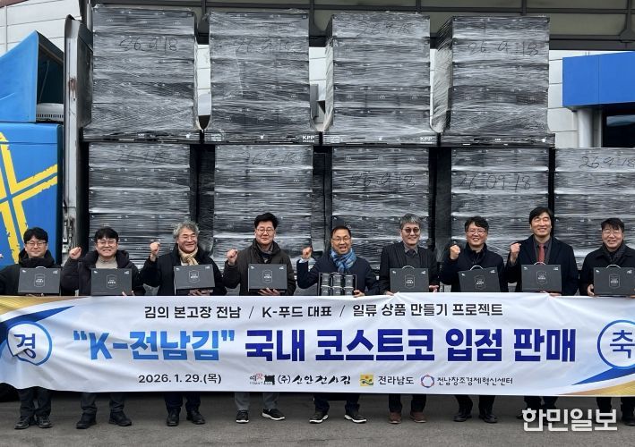 한민일보 서울포커스 박정민 기자 | 전라남도는 29일 신안의 (주)신안천사김에서 ‘케이(K)-전남김’의 국내 코스트코 전 매장 판매를 기념하는 선적 행사를 했다.