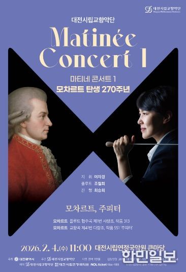 한민일보 서울포커스 김서윤 기자 | 대전시립교향악단은 2월 4일 오전 11시, 대전시립연정국악원 큰마당에서 대표적인 기획 시리즈인 ‘마티네 콘서트’의 2026년 첫 무대를 연다.