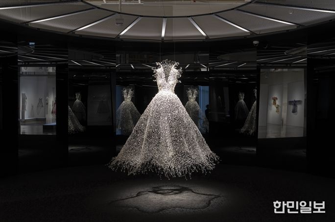 특히 3층 전시장 도입부 'Dreaming' 공간이 이번 전시를 대표하는 화제의 공간이자 주요 포토스폿으로 큰 인기를 끌고 있다. 어둠 속 중심에 전시된 ‘백매(白梅)’ 드레스는 검은 거울과 조명 연출을 통해 몽환적인 장관을 만들어내며 관람객의 발길을 붙잡고 탄성을 자아낸다.