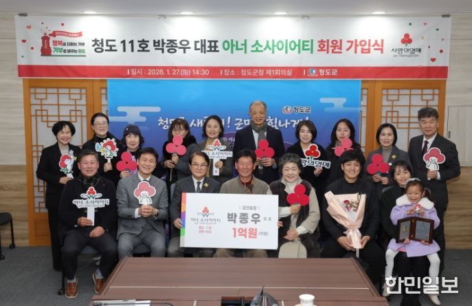 한민일보 서울포커스 임경복 기자 | 강산농장 박종우 대표는 지난 27일 청도군청에서 아너 소사이어티 회원 가입식을 가졌다.
