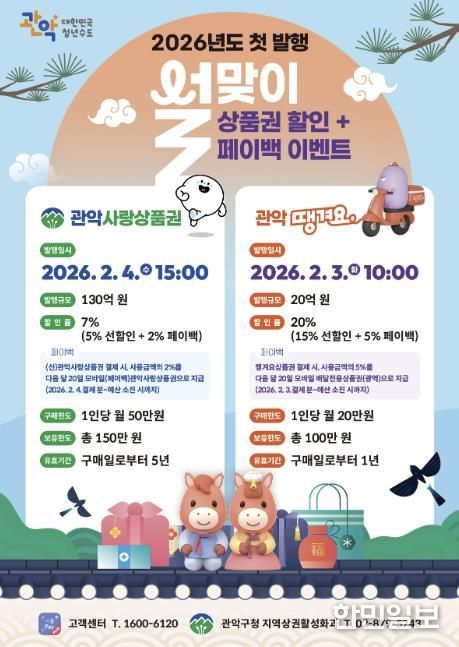 한민일보 서울포커스 곽중희 기자 | 관악구가 2026년 새해를 맞아 위축된 지역 소비를 촉진하고 민생경제에 활력을 불어넣기 위해 ‘관악땡겨요상품권’과 ‘관악사랑상품권’의 발행을 시작한다.