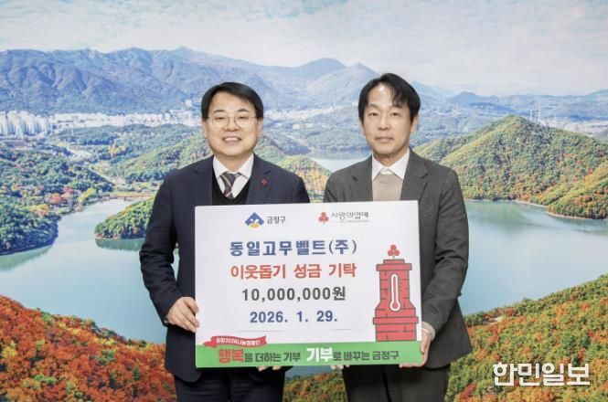 한민일보 서울포커스 임광현 기자 | 부산 금정구는 지난 29일 동일고무벨트㈜에서 경제적으로 어려운 지역 청소년들을 위한 ‘금정 희망의 사다리 운동 사업’에 이웃돕기성금 1,000만원을 기탁했다고 밝혔다.