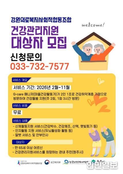 한민일보 서울포커스 임경복 기자 | 원주시는 2026년 노인일자리 신규사업으로 ‘G케어매니저(마을건강활동가)’ 사업을 추진한다.