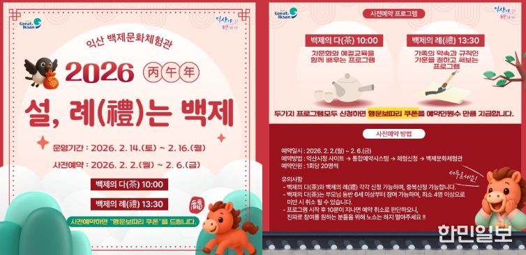 한민일보 서울포커스 김용택 기자 | 익산시가 설 명절을 맞아 백제의 문화와 예절을 체험으로 풀어낸 프로그램을 선보인다.