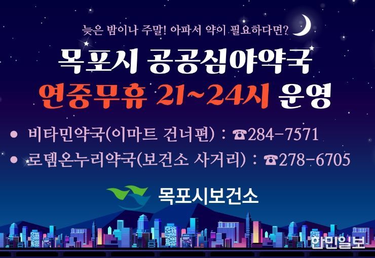 한민일보 서울포커스 임광현 기자 | 목포시는 심야시간대(21:00~24:00)에 연중무휴로 운영되는 공공심야약국 사업을 2026년에도 지속 추진하며, 시민들로부터 높은 호응을 얻고 있다.