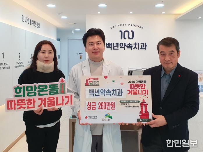 김창우 백년약속치과 원장은 “작년부터 폐금을 모아 기부를 이어오고 있다”며 “앞으로도 지역사회에 실질적인 도움이 될 수 있도록 나눔 활동을 지속하겠다”고 말했다.