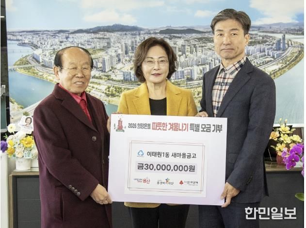 한민일보 서울포커스 김서윤 기자 | 서울 용산구는 2일 구청장실에서 이태원1동 새마을금고로부터 ‘2026 희망온돌 따뜻한 겨울나기’ 성금 3000만원을 기탁받았다고 밝혔다. 기탁된 성금은 지역 내 저소득 가구와 취약계층을 위한 긴급 생계·의료 지원 등에 사용될 예정이다.