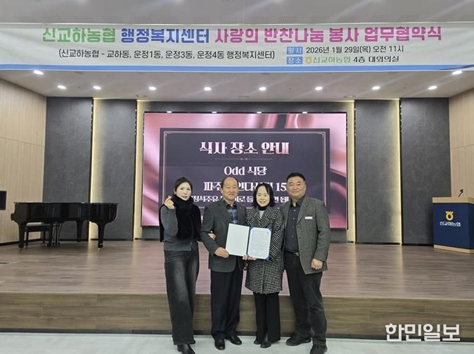 이번 협약은 신교하농협 고향주부모임의 ‘사랑의 반찬나눔’봉사활동과 운정1동 지역사회보장협의체의 지역 밀착형 복지활동을 연계한 민관 협력 사업이다. 신교하농협 고향주부모임 봉사단이 밑반찬을 직접 조리·포장해 운정1동 행정복지센터에 후원하면, 지역사회보장협의체 위원들이 저소득 가정을 직접 방문해 반찬을 전달하는 방식으로 운영된다.