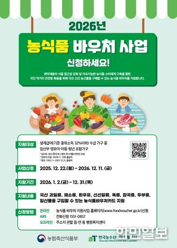 특히 기존 농식품바우처 이용 가구 중 자격을 유지하는 경우에는 별도의 신청 절차 없이 자동으로 농식품바우처가 갱신돼 지급된다.