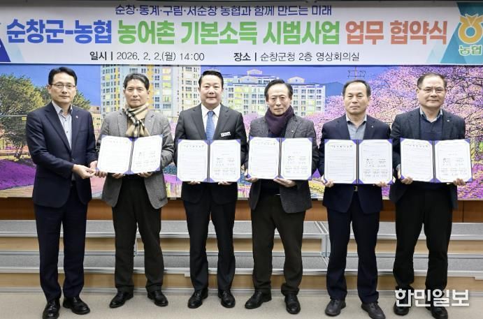 한민일보 서울포커스 김용택 기자 | 순창군은 농어촌 기본소득 시범사업의 안정적인 추진을 위해 2일 군청 2층 영상회의실에서 NH농협 순창·동계·구림·서순창농협과 업무협약을 체결했다.