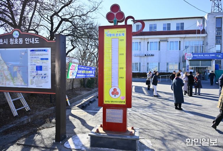 한민일보 서울포커스 임경복 기자 | 청호동 지역사회보장협의체는 2월 3일 청호동주민센터에서 2026년 ‘사랑의 온도탑 제막식’을 개최하고, 청호동 아바이나눔기금 조성을 위한 성금 접수와 모금 활동을 전개했다.