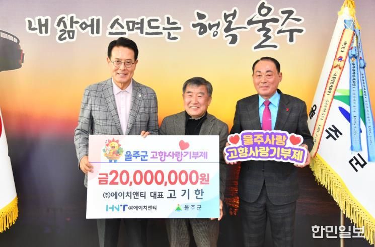 한민일보 서울포커스 기자 | 고기한 ㈜에이치앤티 대표가 3일 울주군에 고향사랑기부금 연간 최고액인 2천만원을 전달하면서 4년째 고향사랑을 실천하고 있다.