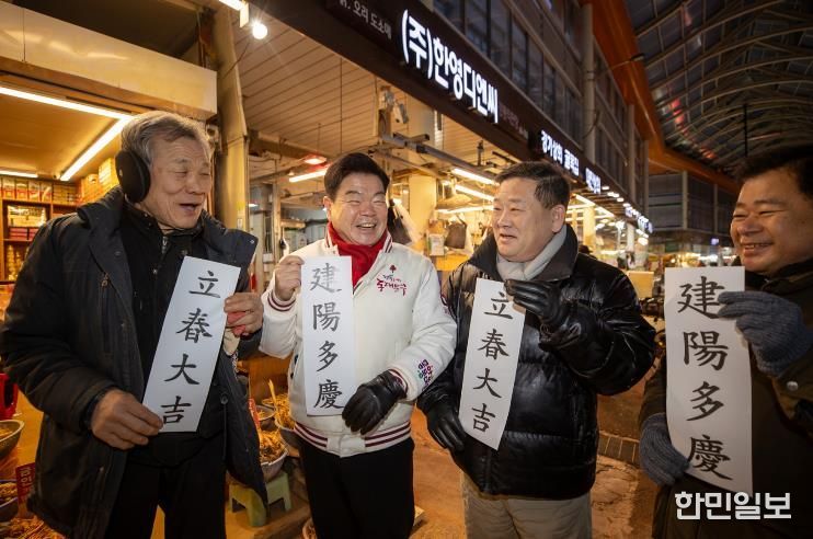 특히 이번 일정은 4일 ‘입춘’을 앞두고 진행돼 분위기가 남달랐다. 입춘은 24절기 가운데 첫 절기로 ‘봄의 시작’을 알리는 날로, 예로부터 대문에 ‘입춘첩’을 붙이며 한 해의 복을 기원해 왔다. 이 구청장과 상인들은 ‘입춘대길 건양다경(立春大吉 建陽多慶)’이라 적힌 종이를 함께 들어 보이며 환하게 웃는 사진을 남기기도 했다. 이 문구는 입춘에 많이 쓰이는 글귀로 “봄이 드니 크게 길하고, 좋은 경사가 많기를 바란다”는 뜻을 담는다. 구는 “설을 앞둔 시장의 분주함과 입춘이 상징하는 새출발의 기운이 맞물려, 주민과 상인 모두에게 작은 희망이 되길 바라는 마음”이라고 전했다.