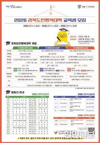 한민일보 서울포커스 김봉순 기자 | 영주시는 시민들에게 체계적이고 수준 높은 평생학습 기회를 제공하기 위해 2월 2일부터 2월 13일까지 ‘2026년 경북도민행복대학 영주시캠퍼스’ 신입생 50명을 모집한다.