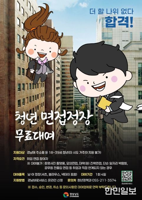 한민일보 서울포커스 임경복 기자 | 경상남도는 도내 구직청년의 취업 준비 부담을 덜기 위해 ‘청년 면접정장 무료대여 사업’을 시행한다고 밝혔다.