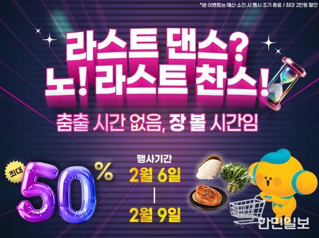 이번 기획전은 명절 직전까지 바쁜 일상으로 장보기에 여유가 없었던 소비자를 겨냥해 “라스트 댄스? 노! 라스트 찬스!_춤출 시간없음, 장 볼 시간임”이라는 유쾌한 콘셉트로 기획됐으며, 설 상차림에 필요한 고흥산 농수축특산물을 최대 50% 할인된 가격으로 선보인다.