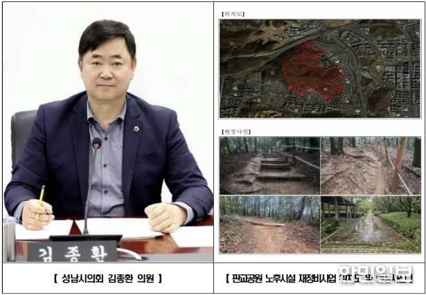 한민일보 서울포커스 김성혜 기자 | 성남시의회 국민의힘 김종환 의원(판교·백현·운중·대장동, 예산결산특별위원장)은 분당구 판교동 판교공원 일원 노후 산책로와 바닥포장 등을 정비하는 재정비공사가 본격 추진됨을 밝혔다.