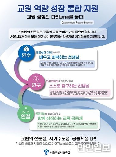 한민일보 서울포커스 국용호 기자 | 서울특별시교육청은 '2026학년도 교원 역량 성장 통합 지원'을 통해 학생의 배움과 시민의 신뢰로 이어지는 새로운 교원 성장 생태계를 구축한다.