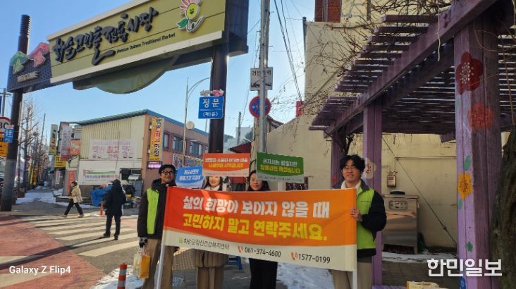 이날 캠페인에서는 겨울철 한파로 심신이 지친 상인과 방문객들의 마음 건강을 살피고, 위기 상황 시 도움을 받을 수 있는 24시간 정신건강 상담 전화 등 지원체계를 알리기 위해 마련됐다.